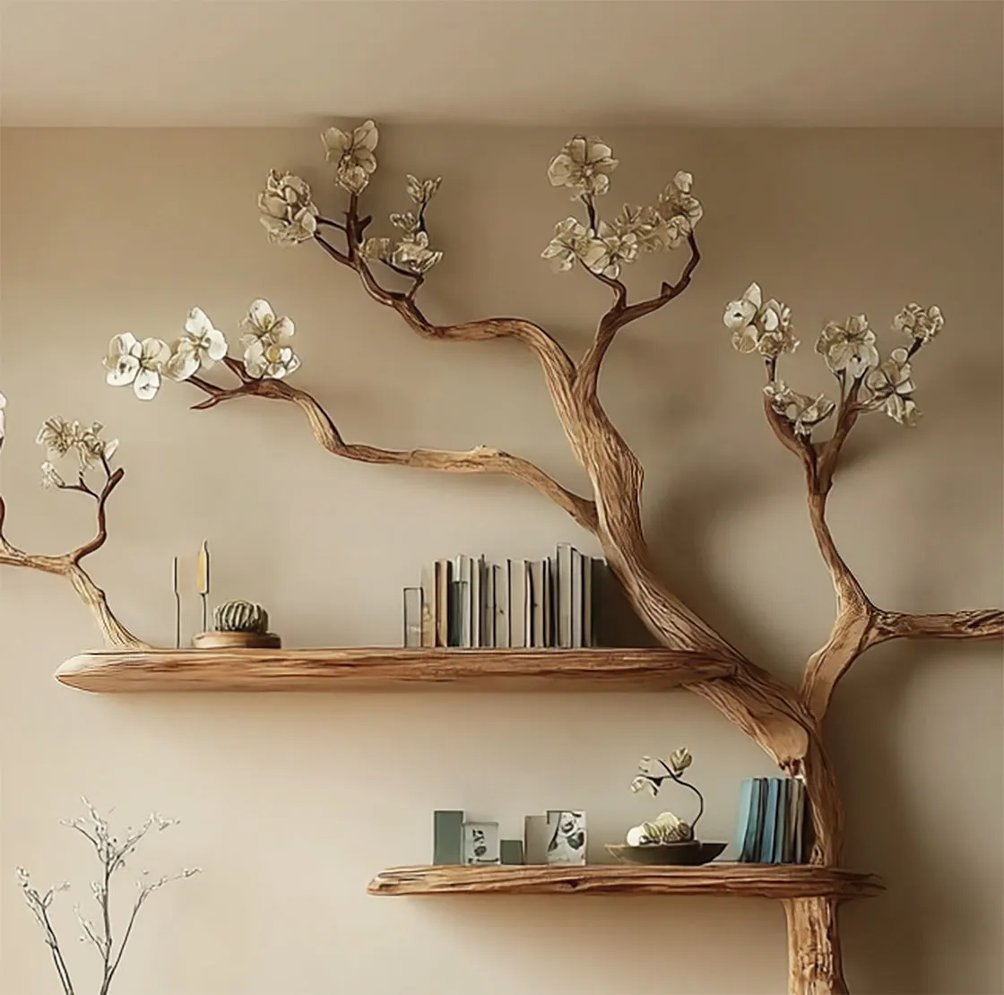 A canopy motif bookshelf draws the eye upward with measured spacing and crisp geometry. The silhouette supports display while keeping sightlines open.
